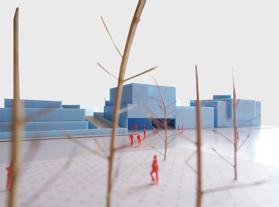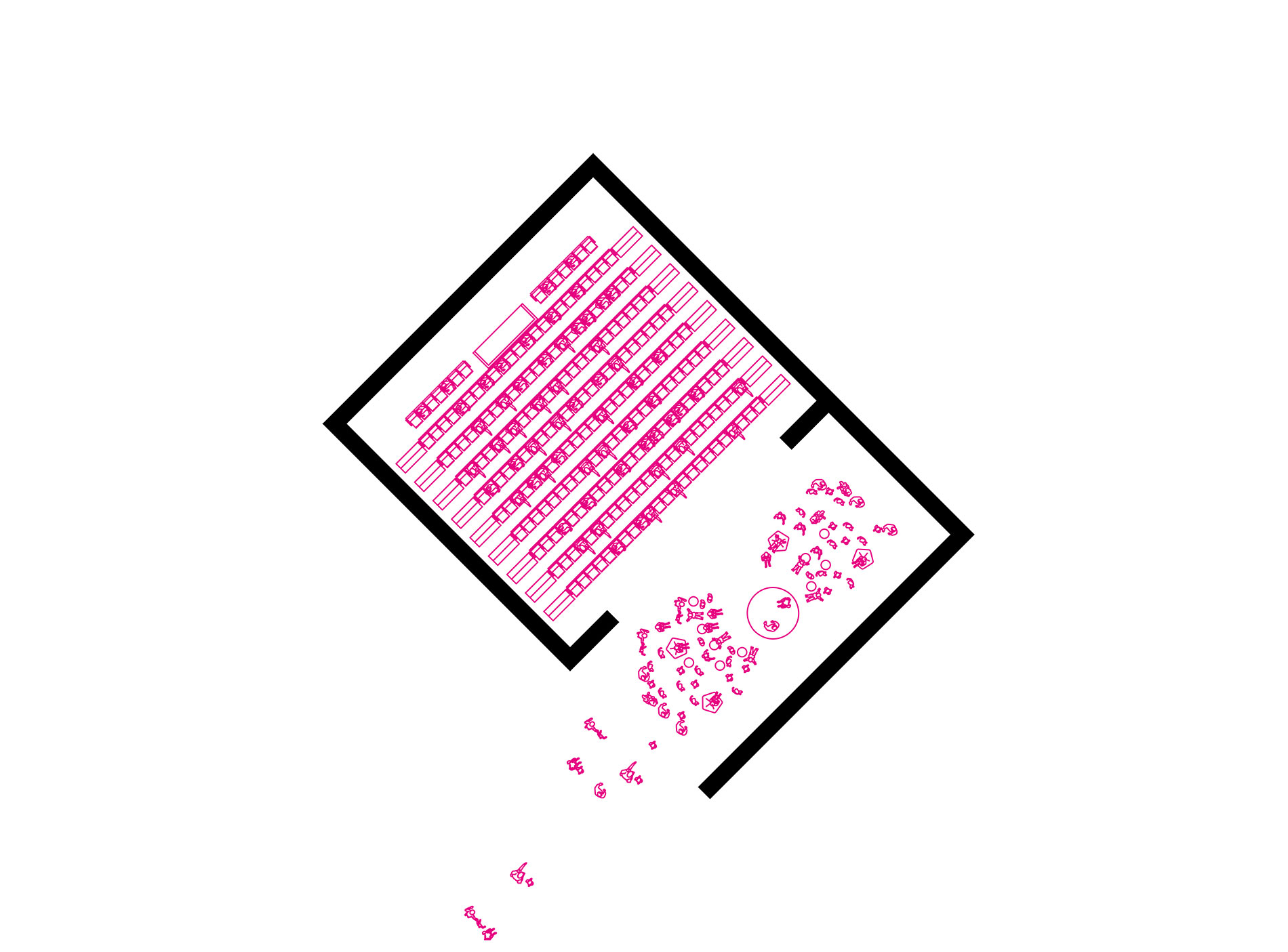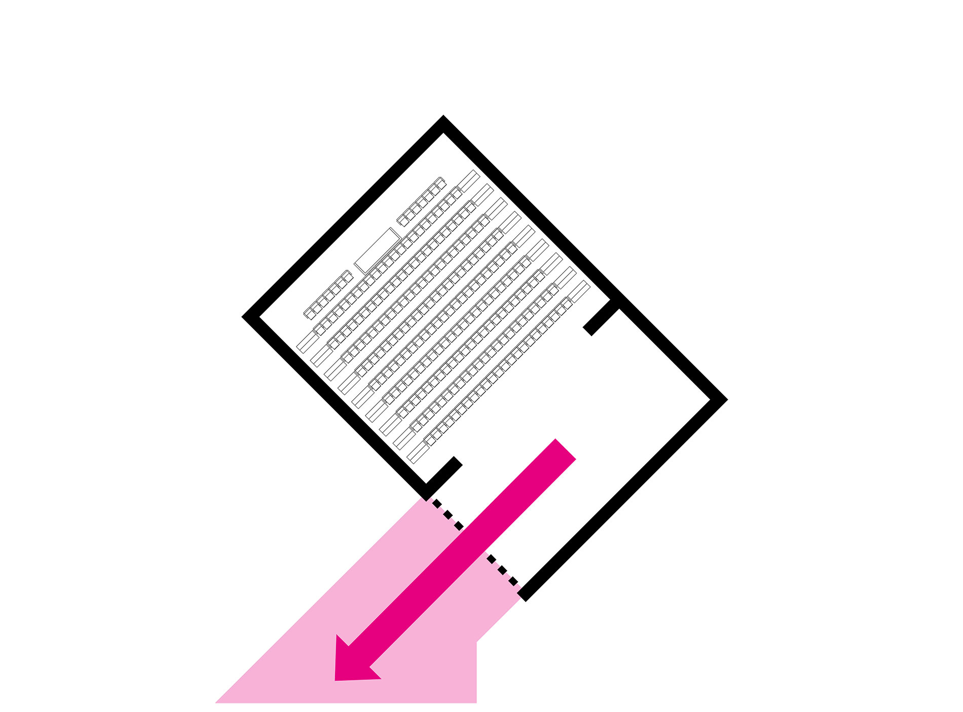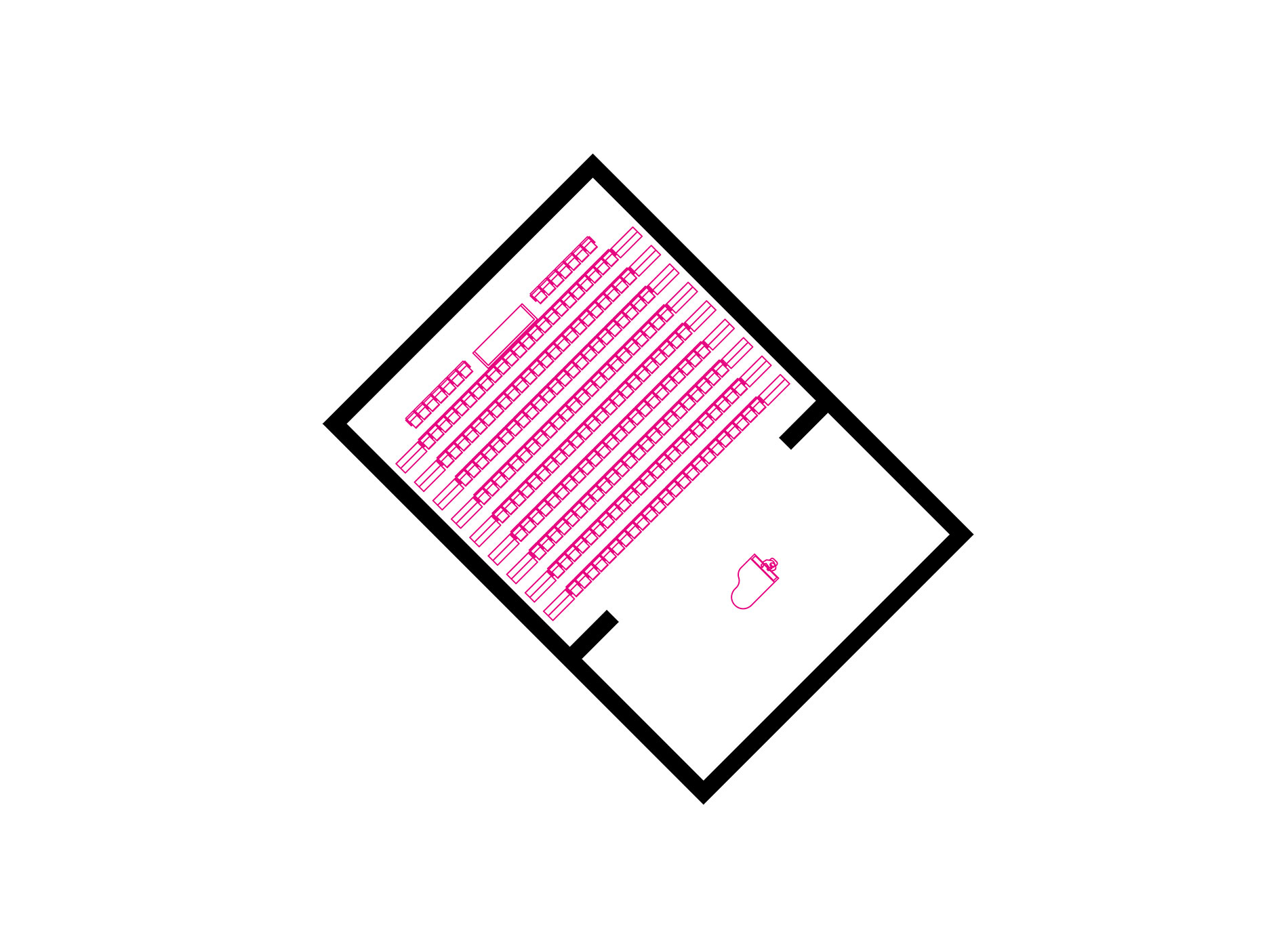 The proposal is that the new auditorium be a continuity of the existing public space. The west side of the stage is separated from the outside of the building by a large gate that can completely open to reveal the stage to the public space.