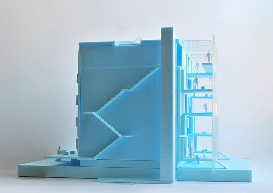 Underneath this stage and floating above it - just like the back of house of a theatre - there are technical areas, curatorial offices and exhibition galleries, that through operable walls and movable platforms, can invade the civic stage and be part of the exhibition performance.